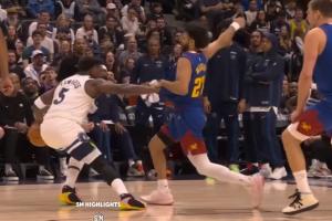 比赛第三节还剩4分46秒时,爱德华兹发力挤开穆雷,急停跳投打板命中,但这球被裁判吹罚了进攻犯规。